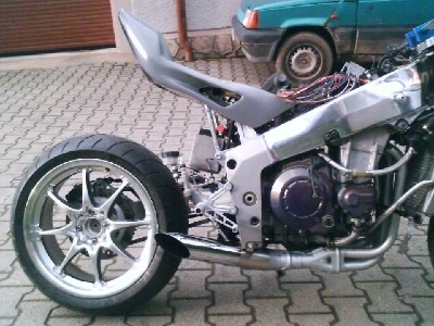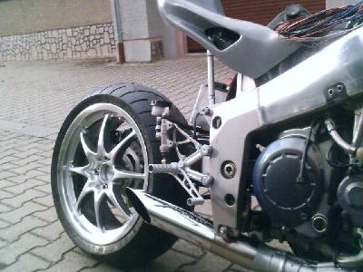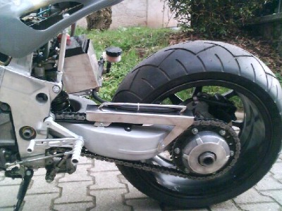 Die einzig wahre RC36 Einarmschwinge der Honda VFR 750 Batteriekasten, Kettenschutz und Umlenkung sind aus Edelstahl